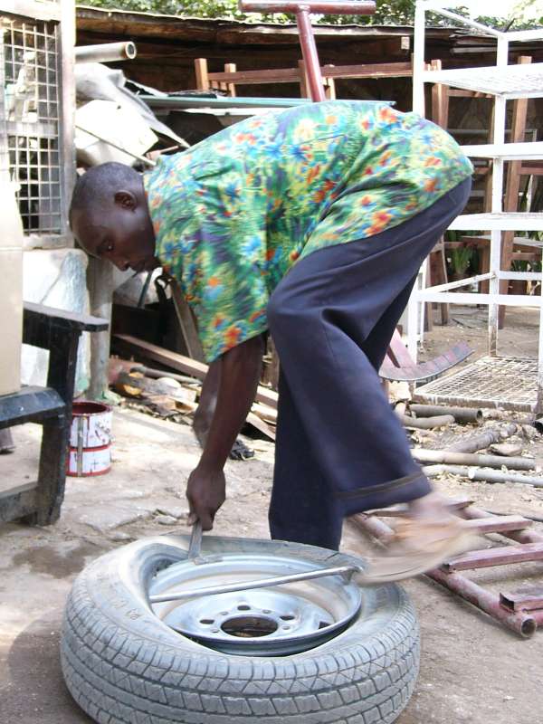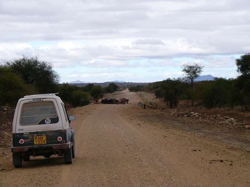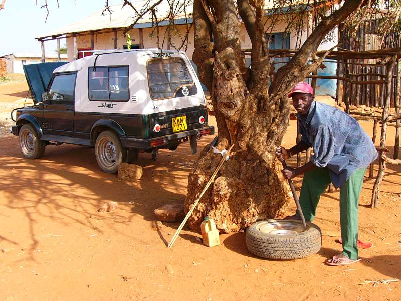 At the turnoff to Wamba I thought for a while, trying to decide whether I should drive the extra 2 x 6 km to have my tire repaired there, but as it still kept some pressure, I continued on, bypassing Wamba.