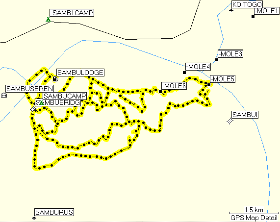 GPS tracks, three game drives in Buffalo Springs, south of the river