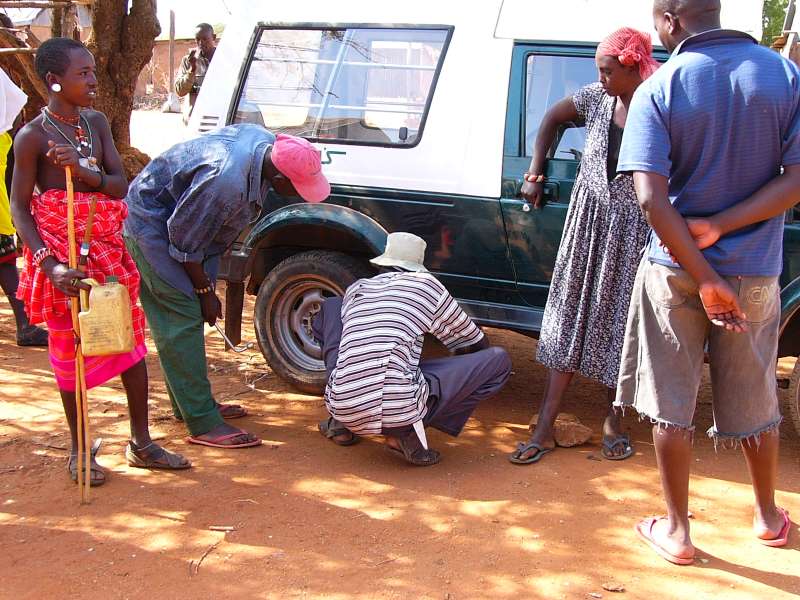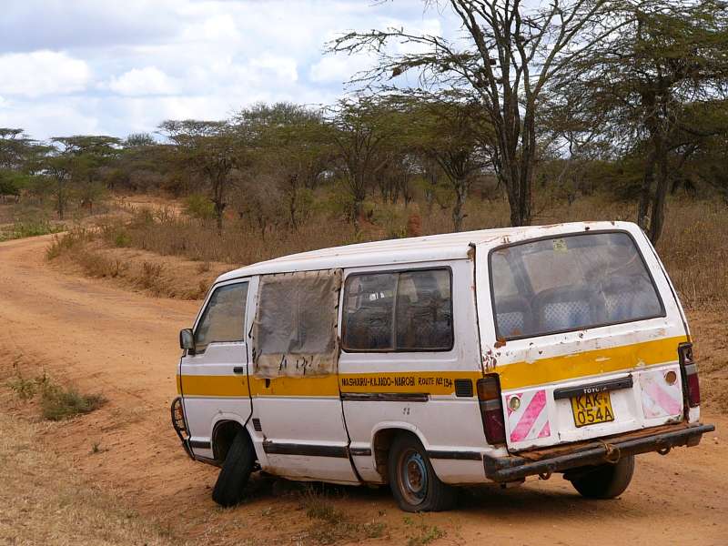 Near the satellite station down in the Rift Valley I took a hitch-hiker, a middle-aged woman who had to leave her daughter behind because I only have one seat in the car. She immediately asked me for KSh100 to give to her daughter, with the promise that I would get it back on arrival. The story seemed to be that she first had to pick up the money at her destination, which, of course, doesnt make sense, because without money she wouldnt have been able to pay the matatu (minibus), had she not met me. But the thought of somehow getting money from wazungu (European-looking foreigners) is so deeply ingrained in many people here that she just had to do this. I hesitated at first, but then I gave her the KSh100 out of curiosity how this would develop later.