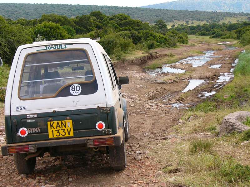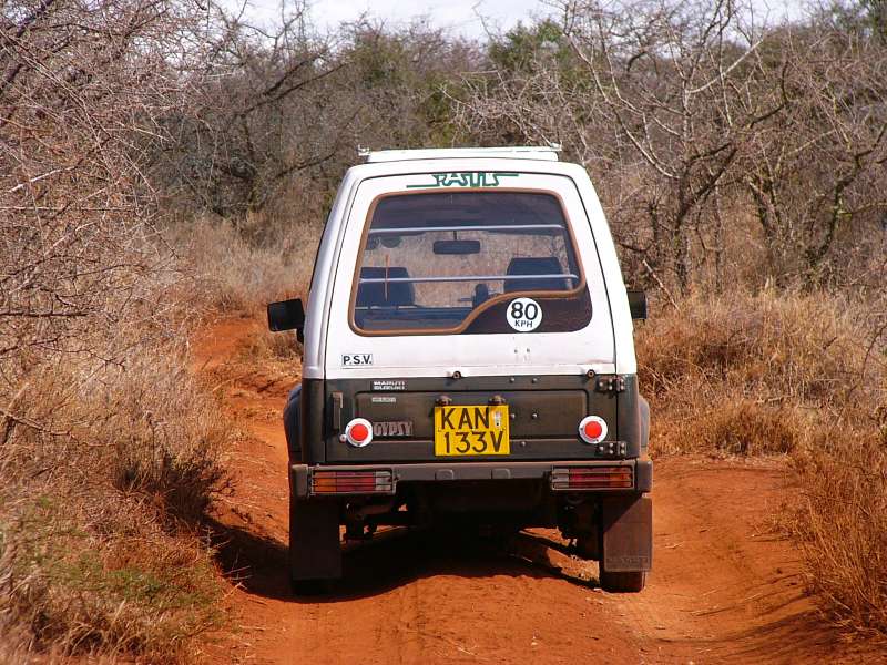 After sunset we landed in Nairobi. (Remember, the sun sets at about 18:30 oclock in Kenya and rises at 6:30.) The visa procedure took an inordinate amount of time, but the luggage unloading took even longer. Shahid Rasul had come as promised and brought me a jeep, a Suzuki Maruti Gypsy as planned. This is an Indian-built car, by license from Suzuki Japan. It is a tad more expensive than the Suzuki Sierra, but much nicer in several respects.