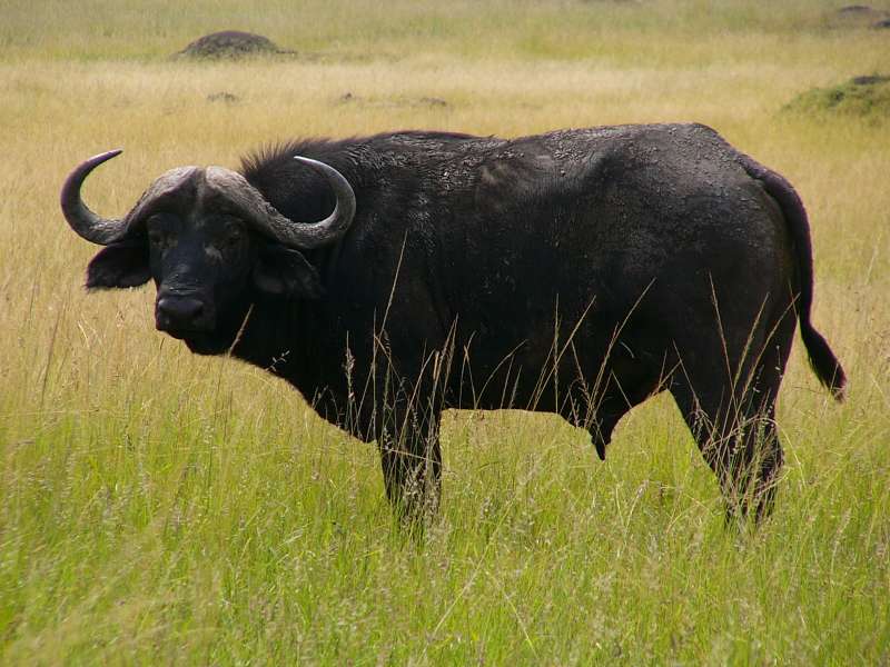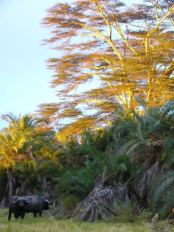 When this was not enough to make them move away, I opened the tent entrance zipper and stepped outside, directly facing the two buffalos. They once chased one of the Maasai watchmen around the water tank trailer, so I was a bit wary of being attacked, but I calculated that in a situation like this the buffalo would have to be insane to attack.