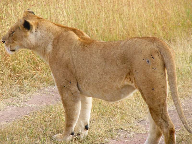 A few kilometers on I saw another two lions, a beautiful couple, male and female, next to the track. When I turned the car towards them to see them better in the headlight beam, they slowly turned away and walked out into the dark space.
