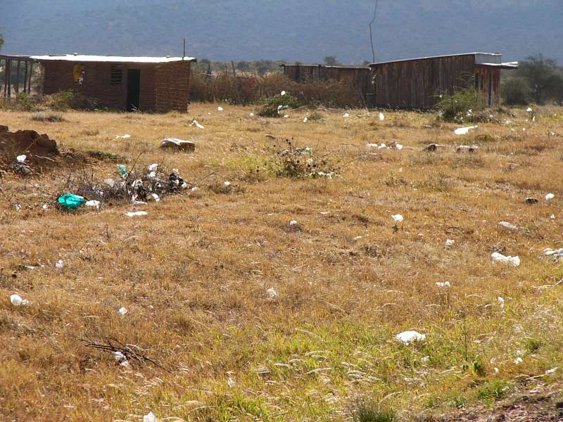 The sun rose in the typical bright yellow of a relatively clean atmosphere, something we no longer have in the industrialized countries, and I reached the main track towards Narok. On my way I passed a tiny roadside settlement whose surroundings were littered by pieces of plastic bags. This, I guess, is one of the downsides of the new consumerism when the public services like garbage collection cannot be established at the same time.