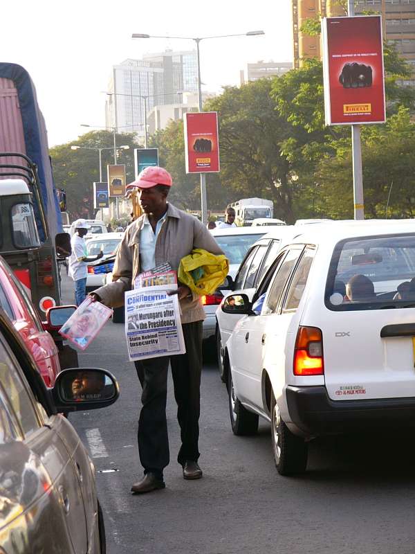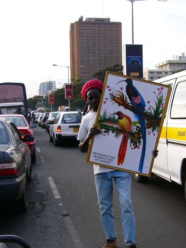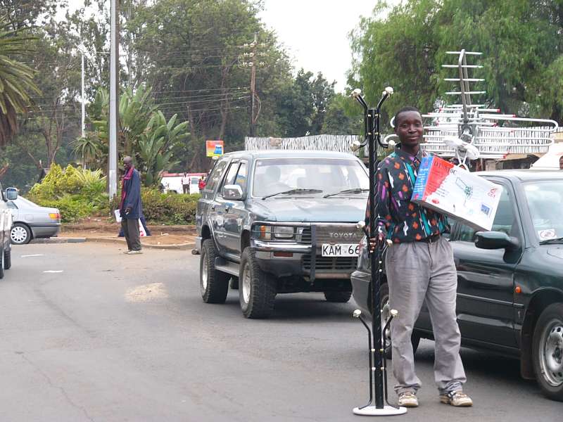 Driving through Nairobi at that time of the day is very slow due to the permanent traffic jam. I used the time to chat with a friend whom I was taking to Nairobi city who works for the Amboseli Trust for Elephants. And I took some photos of people selling things to the captive audience in the cars.