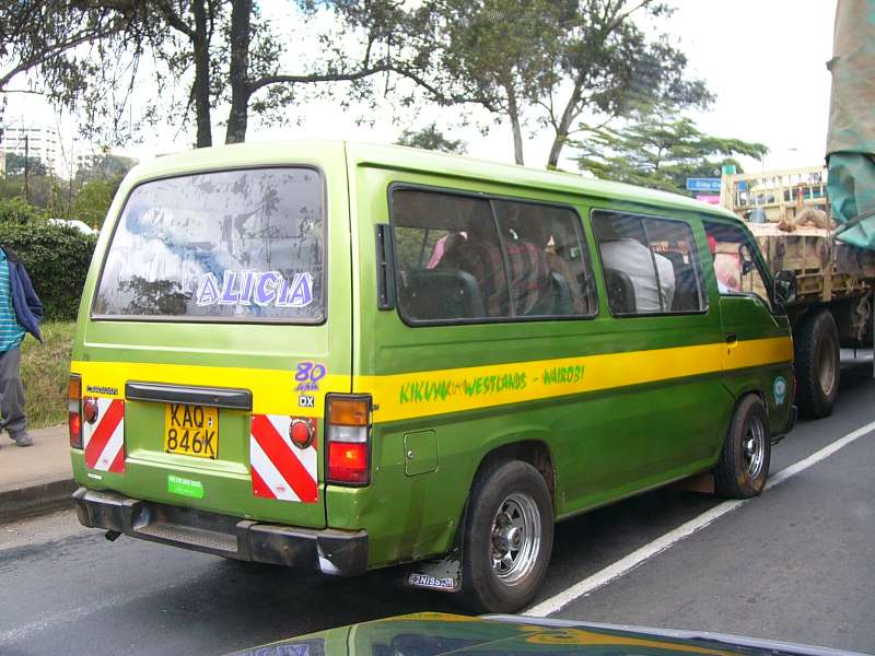 The matatus now always show the newly legally required yellow stripe with the route on it, sometimes also the route numbers and the maximum number of passengers, usually 14 for the standard minibus.