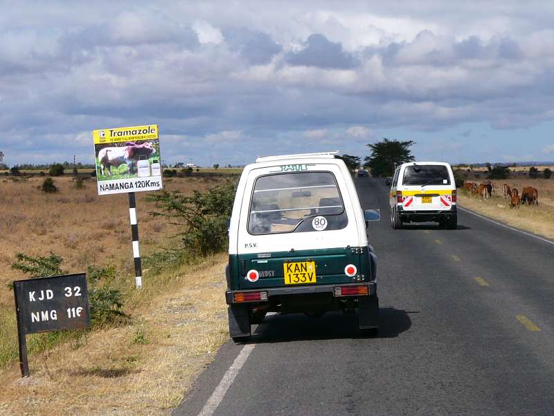 This time I tried to document the driving part a little bit and take at least one photo every hour or two. The trip begins on the paved roads, first the Mombasa Road out of Nairobi, then the road from Athi River to Namanga, on which the following photo was taken.