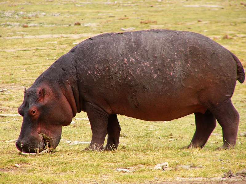 Then I passed by a hippo that behaved unusually in that it kept grazing in daylight, while his companions had already retreated into the safety of the water in the swamp. No surprise this one has already lost his tail. But it allowed me to take a photo and even a video.