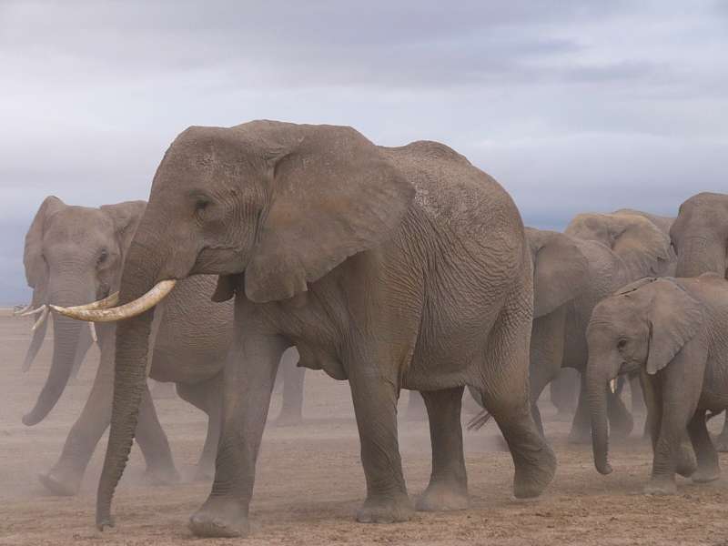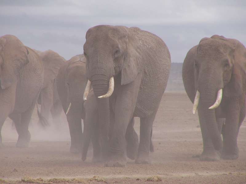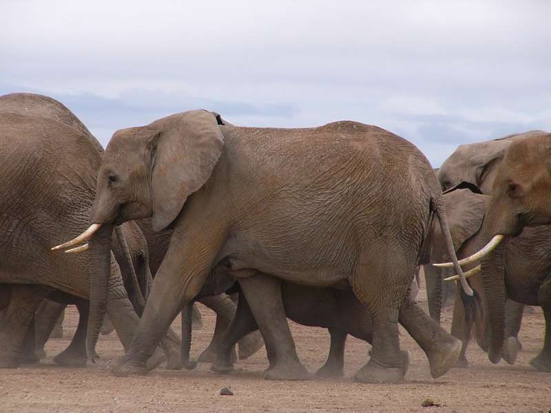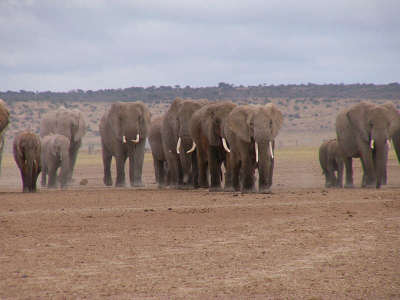 I turned toward northeast to leave Amboseli and drove right across the dry Lake Amboseli, when I met a large group of elephants walking briskly towards the swamp.