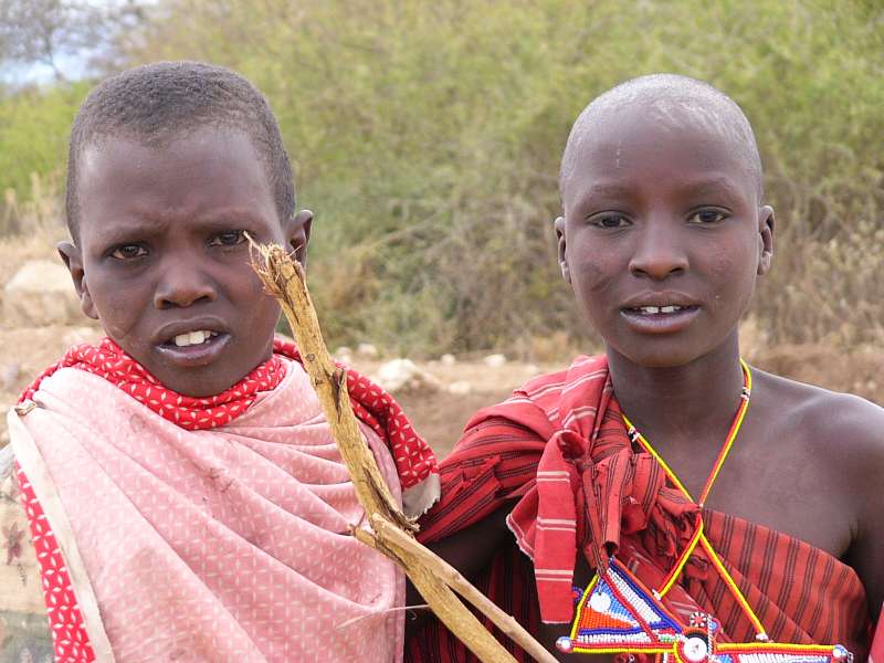 I met two Maasai schoolchildren in their school uniforms and took a photo.