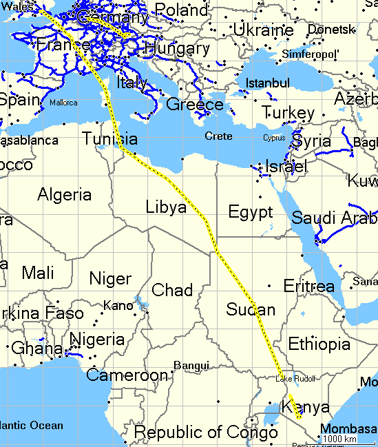 While I write this paragraph, Im already flying the long distance. At this time Im flying somewhere above the Sudan, approaching Kenya. The sun is about to set over the desert.