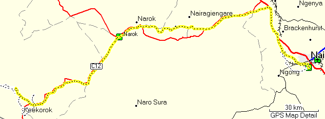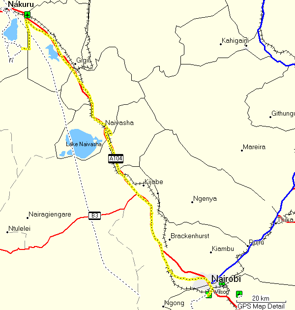 In Naivasha town we turned right to get to the new road as quickly as possible, but one could also continue straight ahead, which is certainly the shorter way. But I don't know how good it is.