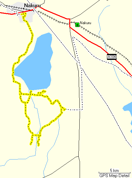 We continued past Gilgil and Lake Elmentaita, then branched off to reach the south gate of Lake Nakuru National Park. Just inside the park is Lake Nakuru Lodge, a first class accommodation with all the luxuries tourists desire. This lodge seems to be run very well. We particularly liked the food.