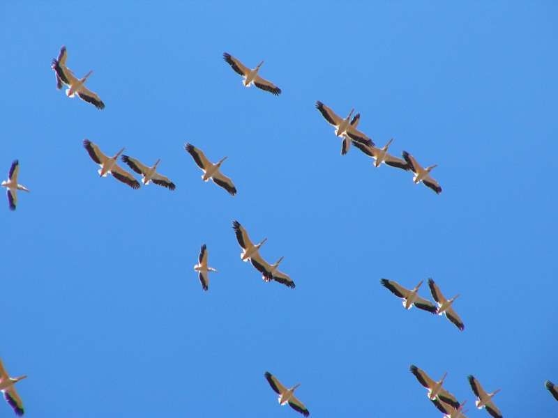 Pelicans circling in an updraft overhead