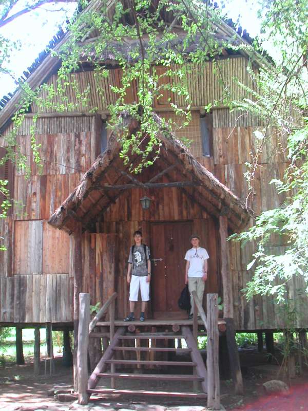 The following picture is very similar to one in an earlier travel report, but it shows the thatched roof extension keeping the tent cool.