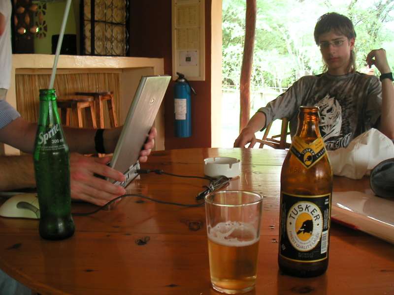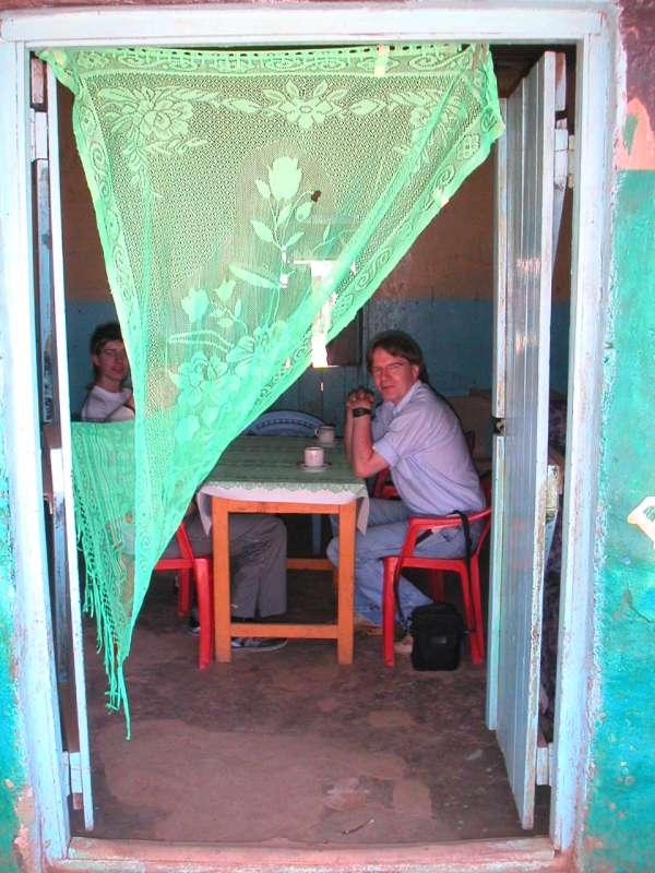 He turned out to have only an unconfirmed appointment to stay for the night, so I offered him to come with us to the Aero Club. Since the receptionist had already gone home, leaving our room keys with the bar man, I couldn't reach the Aero Club on the telephone. So we took our chance, made a plan B (taxi to a hotel), then squeezed into the jeep, which was really full then, and drove off to the Aero Club.