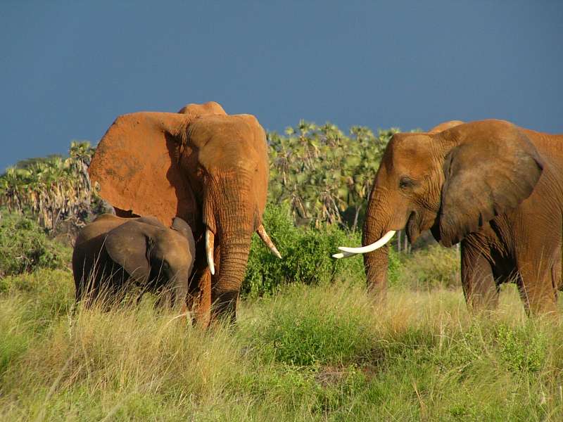 Elephants: Mother with children; bull; mother with child