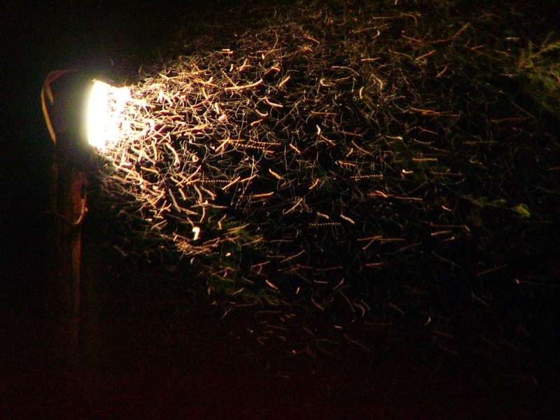 We saw many thousands of termite queens and kings flying and began to look for a termite mound to watch them take off. Soon enough we spotted one. The top of the mound was protected by thousands of ordinary termites, including some soldiers with their fearsomely big heads and mandibles that can easily pierce your thumb and draw blood when you dare to touch them.