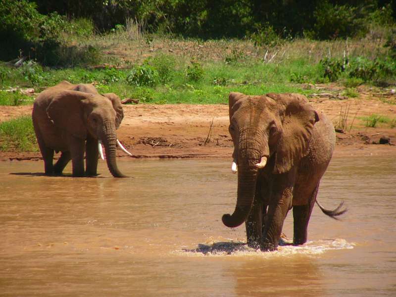 More elephants in and near Samburu River