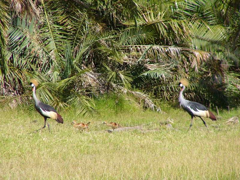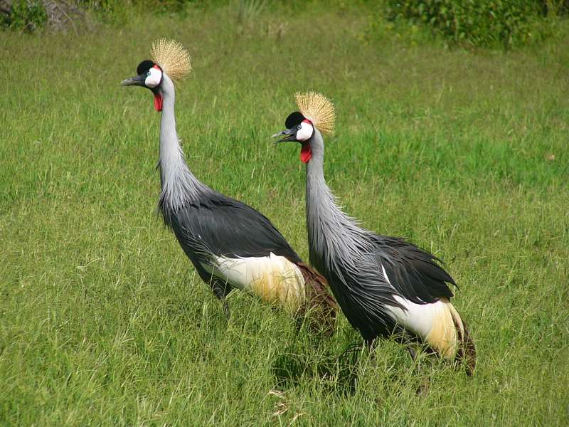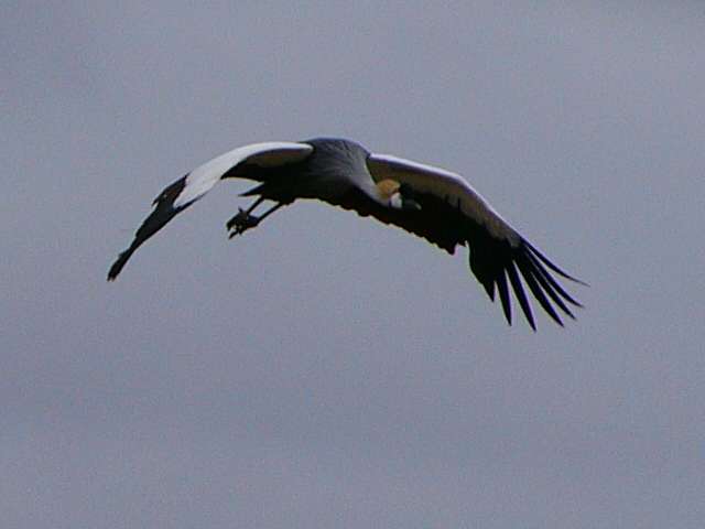 Spur wing goose; crowned crane in flight
