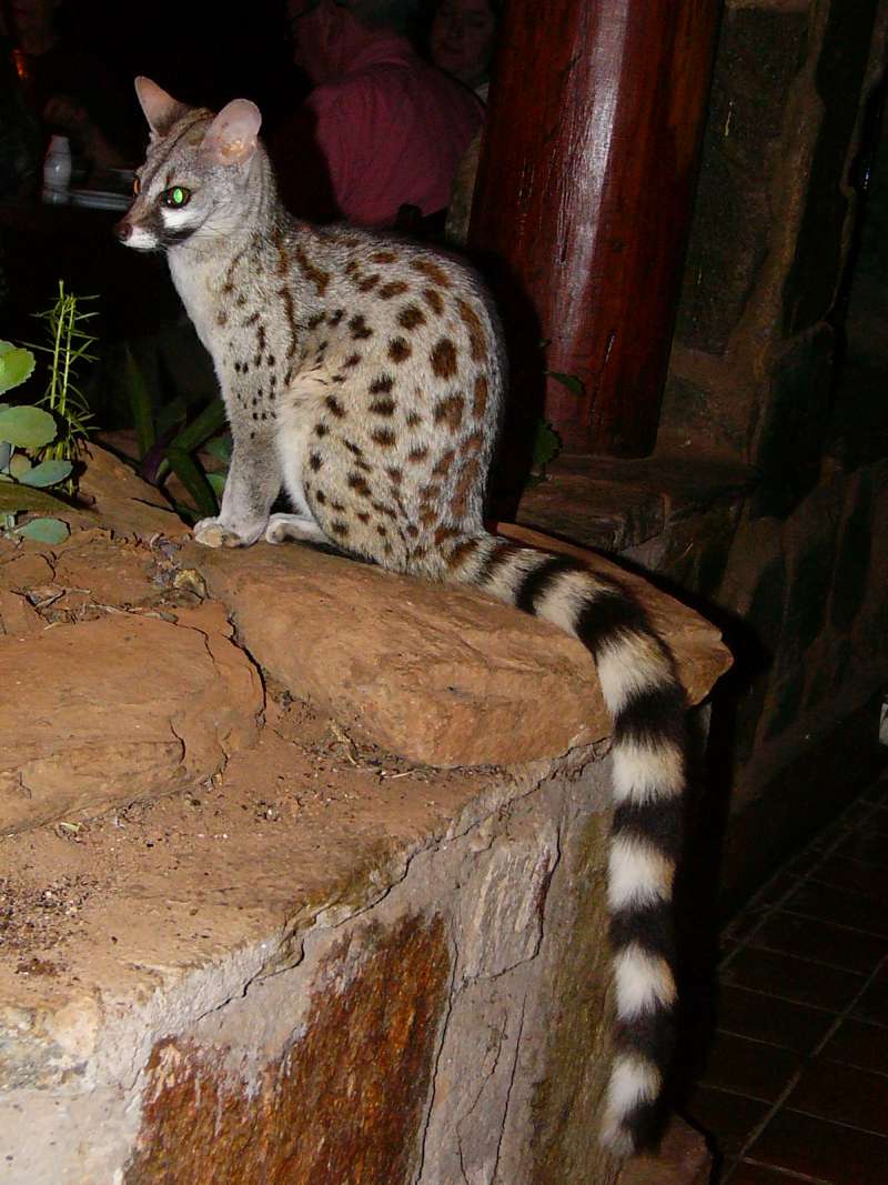 Another visitor, this time right into the dining room, is a genet cat, one of the most graceful animals I know.