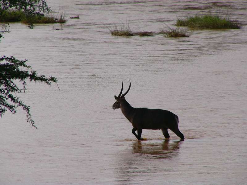 On our last full day in Maasai Mara we tried, after the early morning game drive and after breakfast, to reach another game drive area in the southeast, near Keekorok, but we got into a water trap and lost too much time. The trap was that we had to turn back because of unpassable creeks and drive a long way back to get out of the area.