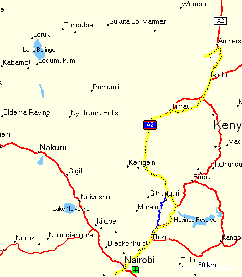 The road from Mai Mahiu to Naivasha town turned out to be rather bad, with lots of potholes, not recommended.