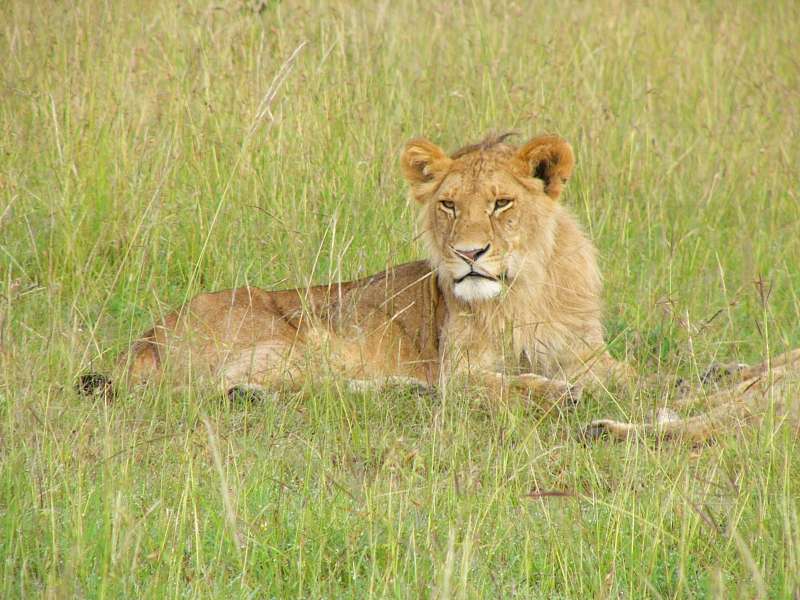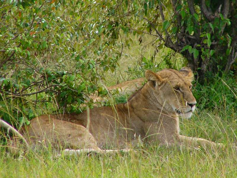 This is a very small pride, just two adult lions, and the male still quite young and not yet endowed with the typical large mane of older males.