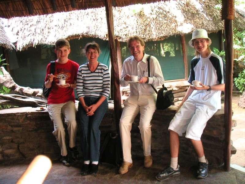 The lodge was as good and friendly as ever. There were very few other guests, so we got the best rooms, two doubles, each with shower, bathtub, and two beds under a big mosquito net.