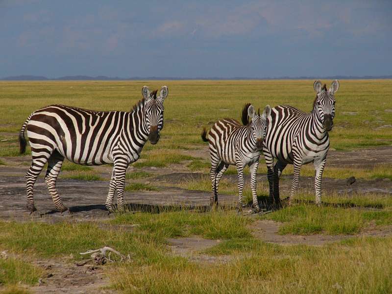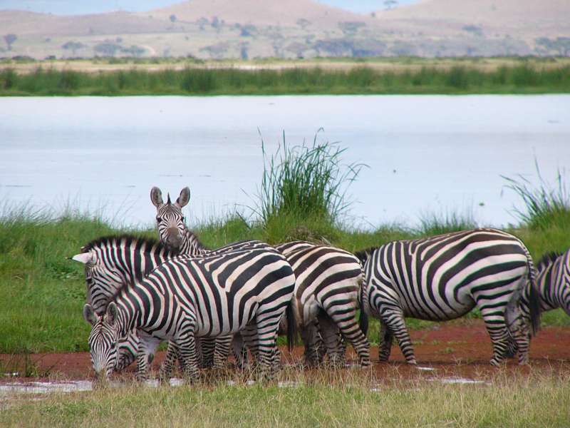 Zebras crossing Lake Amboseli; zebra skull and jaw