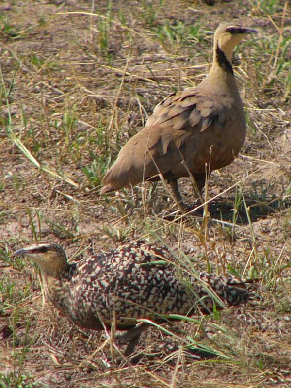 Thursday morning we drove out very early and found first a pair of black-bellied bustards (German name: Trappe), then a small pride, actually just a family, father, mother, and two children, of lions.
