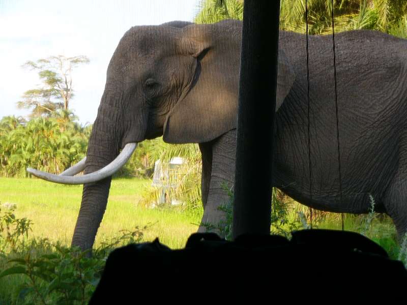 We had dinner in the Farm's restaurant, then went to bed and slept under the mosquito nets while the hippos were coming out of the lake and roaming the garden.