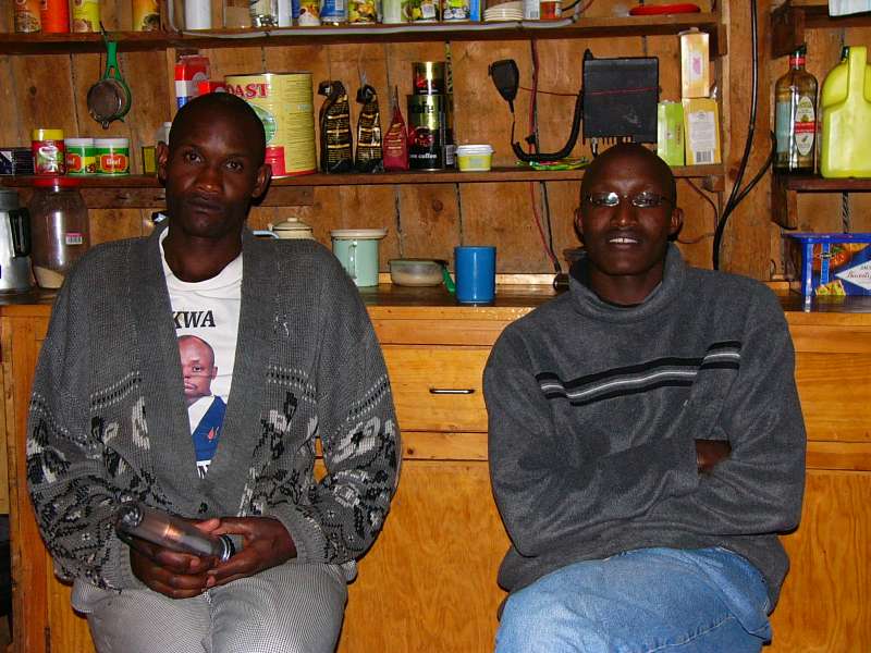 Josphat and David in the research camp kitchen