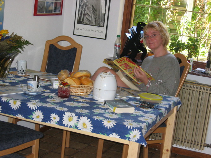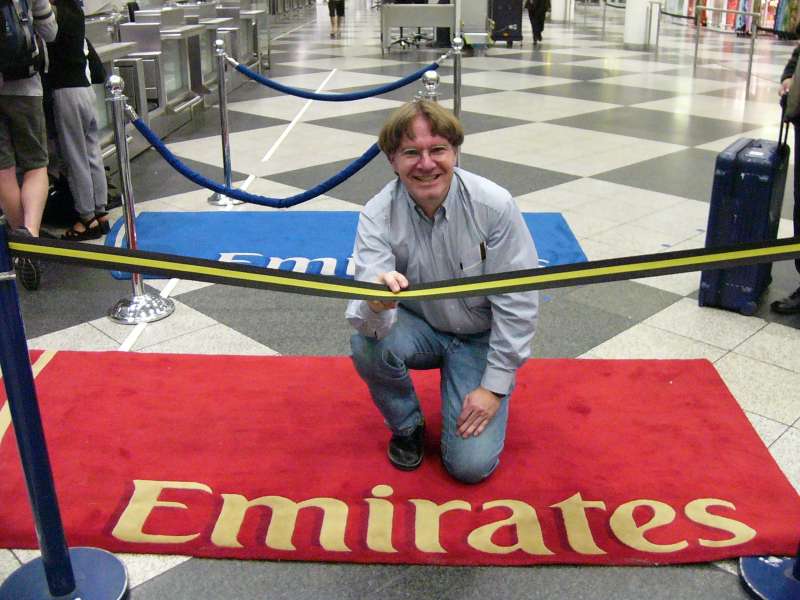 The departure was uneventful. Mausi took me to the airport. KLM's Internet check-in had not worked the promised 30 hours before departure, but KLM had admitted on the telephone that their system was down that day, and it did work later, about 15 hours before departure. On www.klm.de I could do the check-in and even select my seat, albeit only for the flight from Munich to Amsterdam. The boarding-pass printing also didn't work, so I still had to do two things on the airport: a) check in the luggage, and b) get a boarding pass.