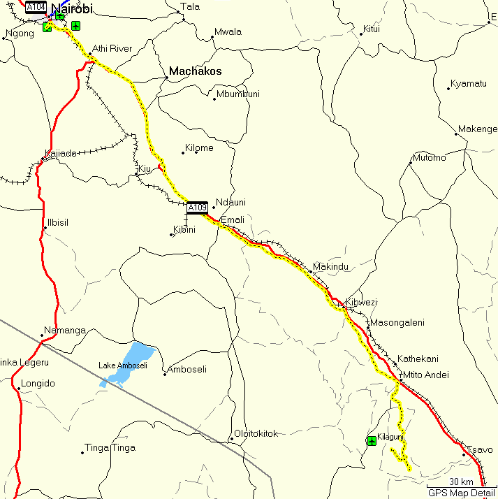 The road to Kajiado is fairly good and one of the few where 80 km/h can be driven. After Kajiado it gets even better—not a single pothole until shortly before Namanga.