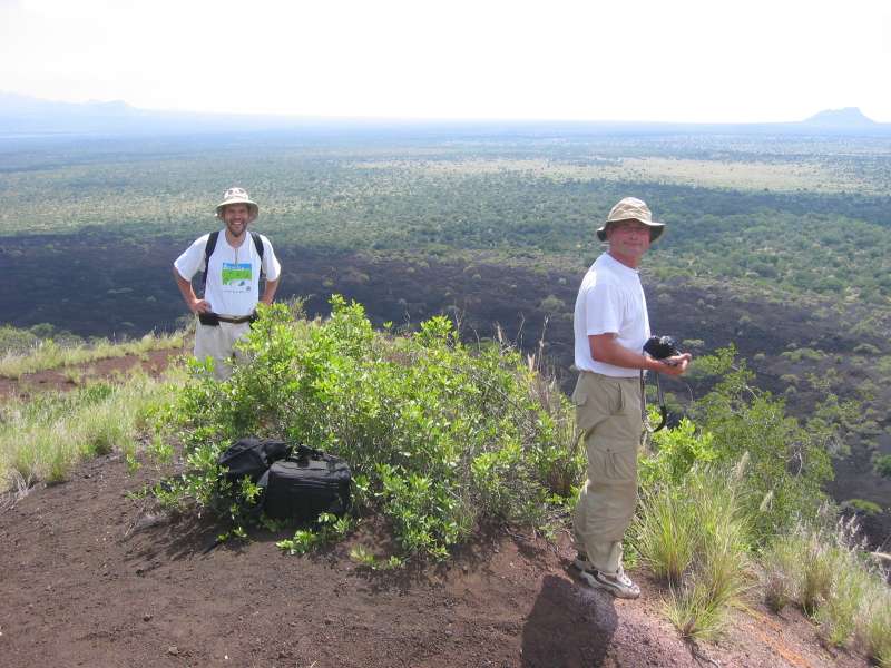 Thomas returns from photographing a termite mound