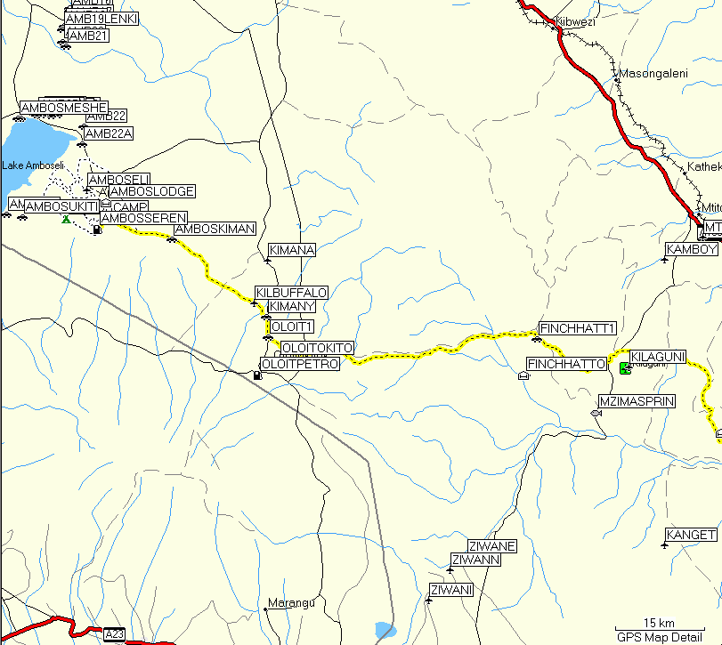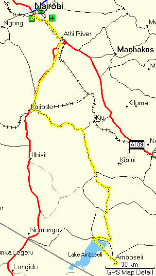 Unfortunately the later part of the route led us over a road (Osilalei – Mashuru – Imaroro – Kajiado) that had been good when I last drove on it, but was now essentially destroyed by water, probably mainly during a recent year with a lot of rainfall. Thus it took us 9 hours, rather than 6, but eventually we made it back to the Aero Club of East Africa.