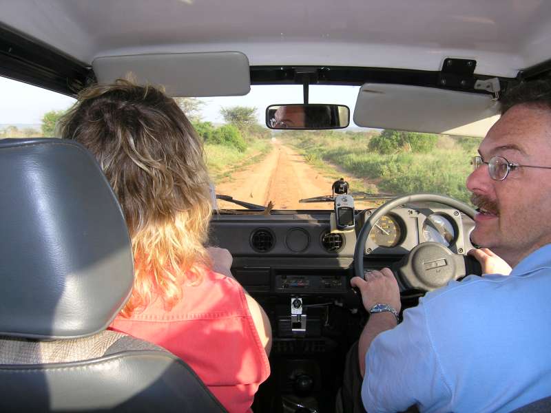 We checked out at the gate, but then drove back to leave the nature reserve on a different route that led us first to Lenkisim Mission. There we stopped, found the missionary, and were invited very friendly to a round of good and tasty drinking water.