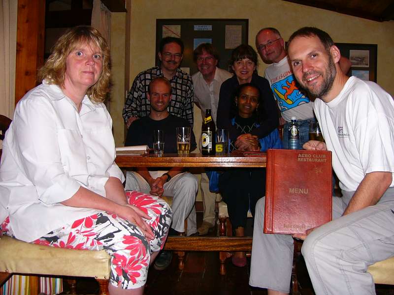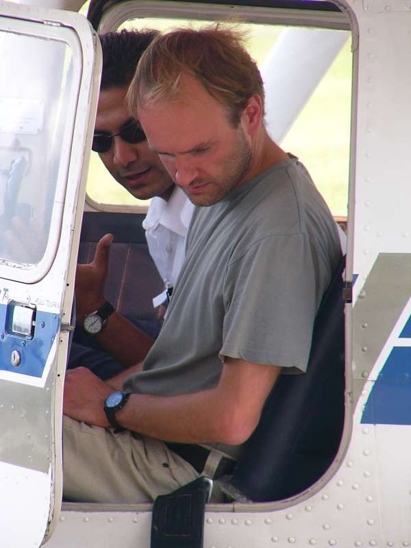 In the morning we had enough time for a last breakfast in the Aero Club, then we returned the two jeeps and were taken to the airport in good time for our flights. Only Peter stayed behind and spent the rest of the day in the Aero Club, because his flight with Emirates via Dubai would leave late at night. The idea to take a flying lesson caught on, and he also booked a flying hour to make the best of the remaining time.