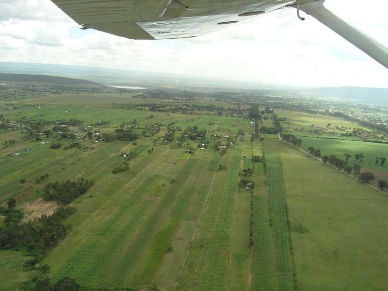 Taking off from Nakuru Lanet airfield, see the lake on the left side, the town on