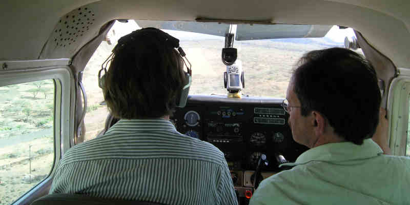 The flyers had a nice lunch in the Aero Club while their plane was refuelled. Then they set out for Samburu as well, flying to the east of Mt. Kenya.