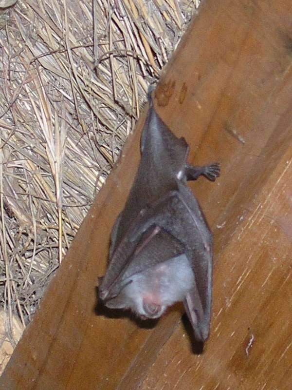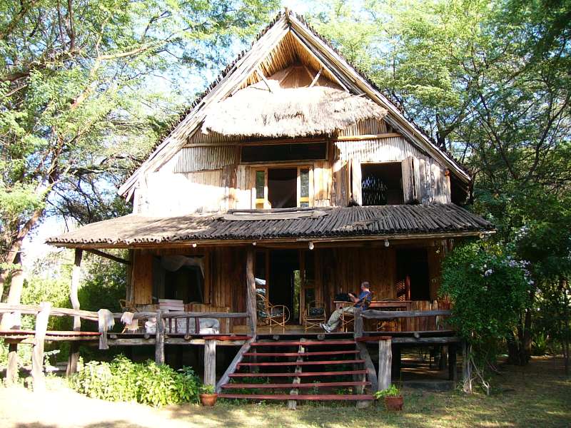 We moved into a fascinating house with a veranda and a cat walk leading to an elevated platform (on the left side in the photo). Thomas actually slept out there and could almost have touched the grazing hippos at night. We shared the airy interior with a few friendly bats, which flew in and out at night and slept hanging from the thatched roof during the day. Because of its gothic touch we called it the witch house.