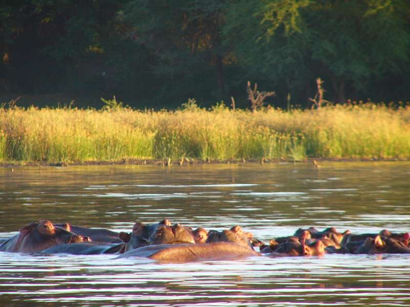 Hippos; Yellow-billed stork; two of 5 indigenous species of Kingfisher; fishermen;