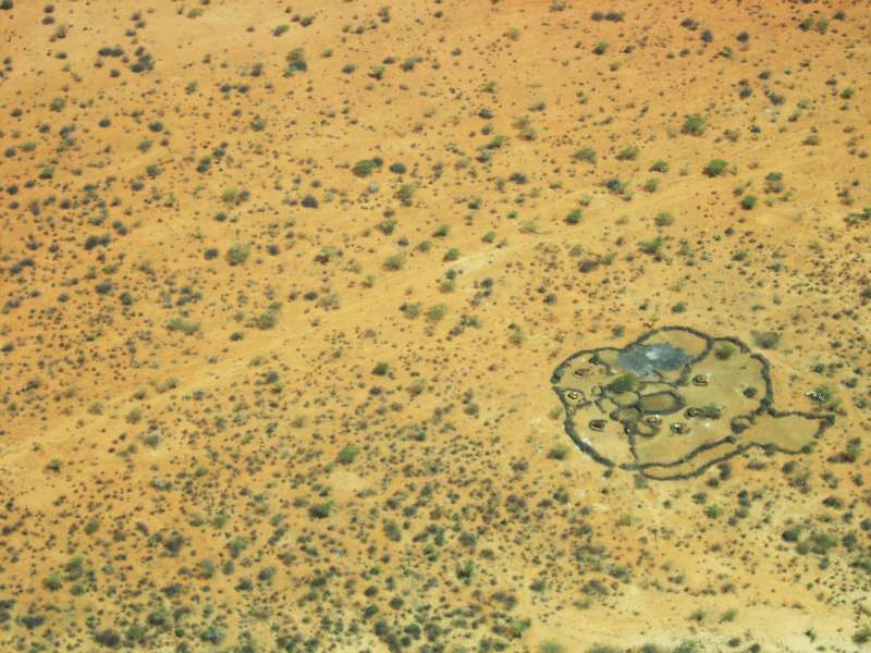 Masinga reservoir (Seven Forks); a Samburu manyatta in the semi-desert