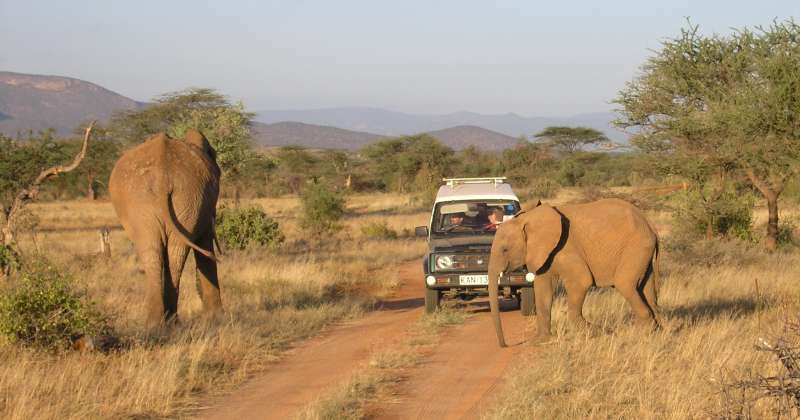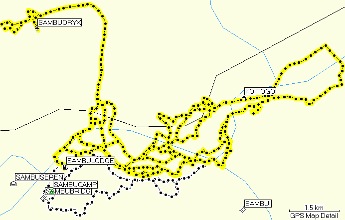 Game drives in Samburu (yellow) and Buffalo Springs (white).