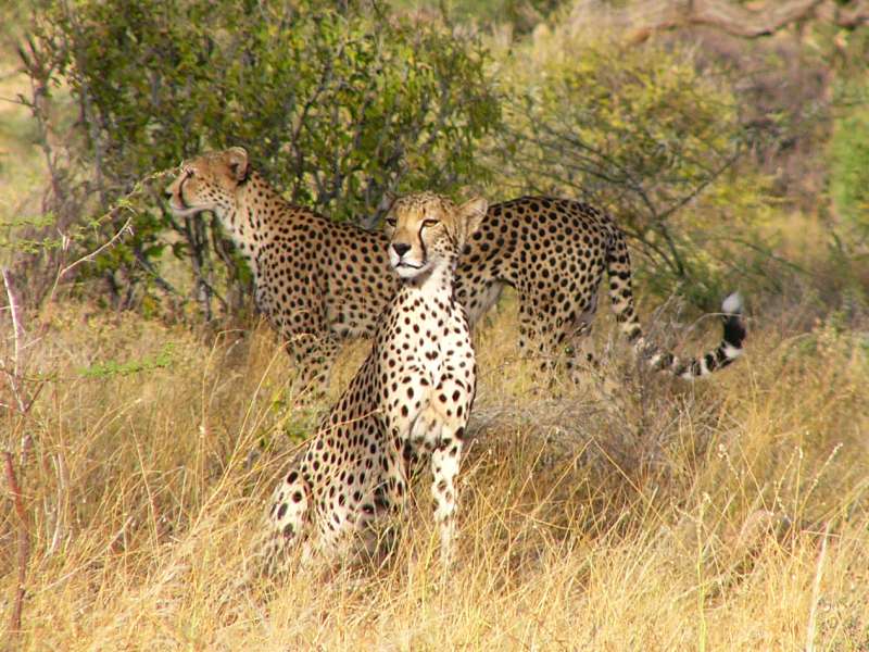 Even the nicest time comes to an end, and so we got going early in the morning again. It was a beautiful sunny morning, and on the way to the airfield we were stopped by three cheetahs, apparently a mother with two almost adult kids.