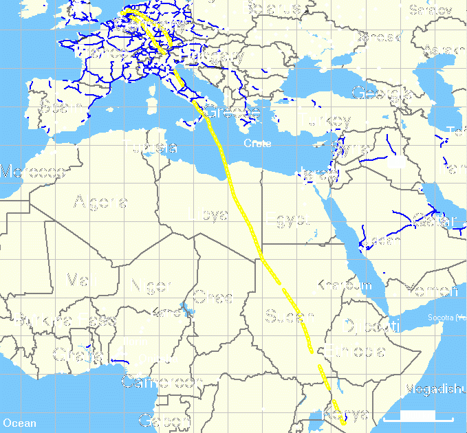 The flight on to Nairobi was also delayed by almost an hour, but the plane, the biggest passenger plane currently in service, a double-decker (not wings, passenger levels) Boeing 747 "Jumbo", flew very fast and arrived almost at the original schedule time.
