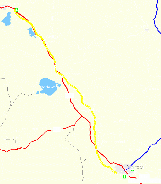 The diversion continued throughout the Lake Elmentaita area, and the rest of the road to Nakuru was not much better. Still I got to Nakuru already around 11 o'clock, which is fairly quick.