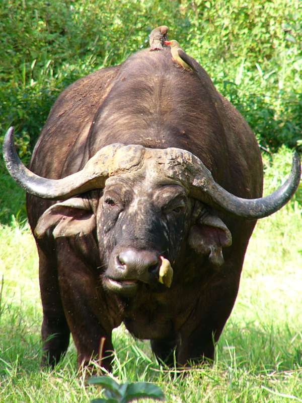 I did see a lot of other wildlife. A large herd of buffalo, a medium sized herd of the rare Eland, and a whole bunch of an even rarer species, the Rothschild giraffe, with several young among them. I saw two large baboon clans, one group of Vervet monkey, lots of Impala, and two rhinos.