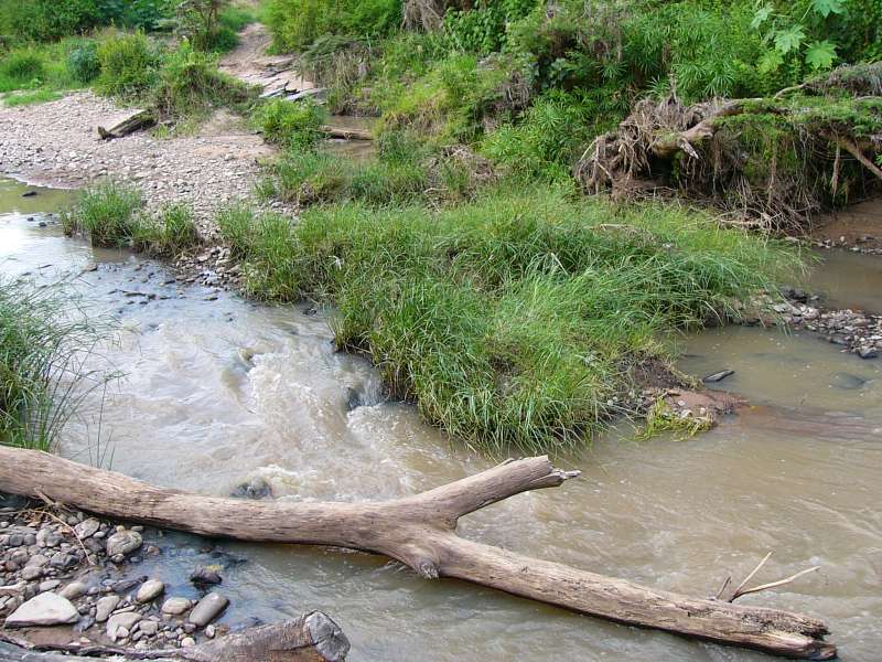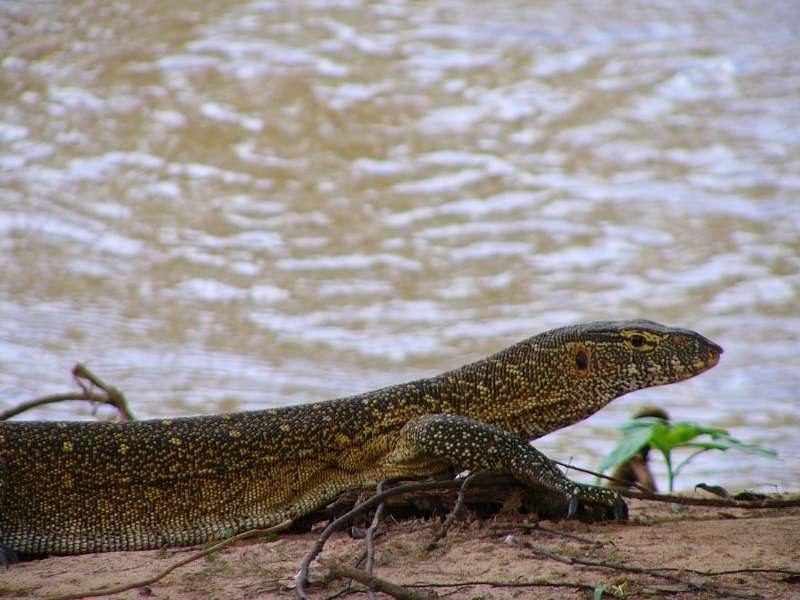 The local crocodile a couple of meters downstream, a fairly big one that I had admired just before, didn't come to my rescue either, for which I'm eternally grateful.