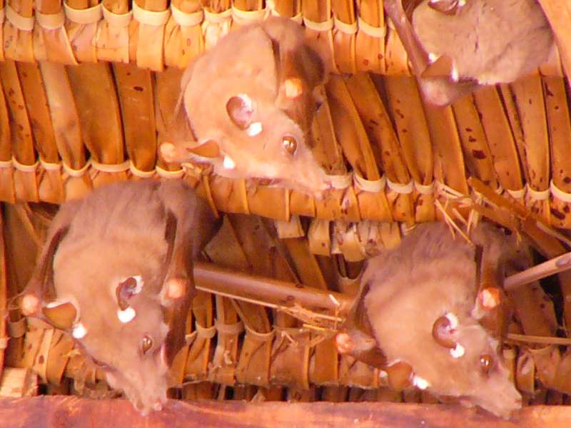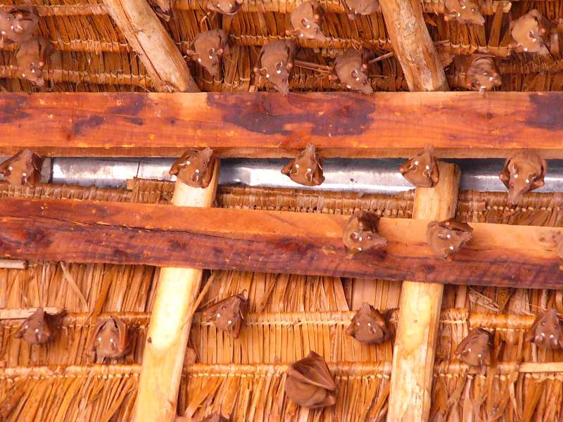 The exit is Chyulu Gate. While waiting for the bureaucracy, I looked up and saw lots of bats, who had chosen the thatched roof as their daytime sleeping place.